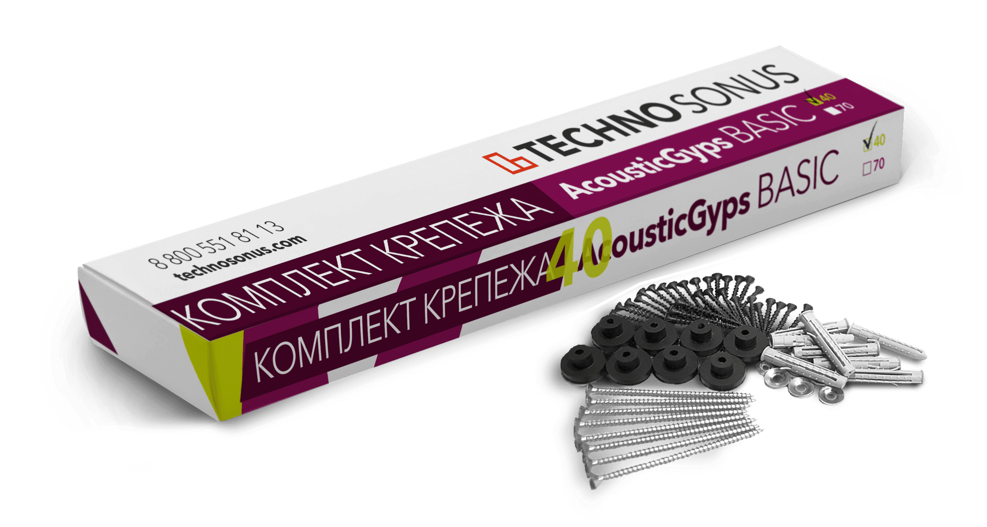 Один комплект рассчитан для крепления одной панели АкустикГипс Бэйсик 40.